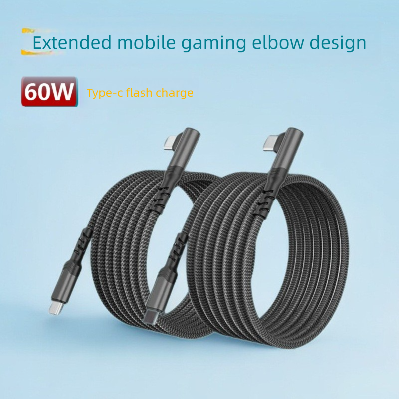 0.3-3m Extended Nylon Mobile Phone Digital Charging Cable Data Cable Type-C Right Angle VR Charging Cable