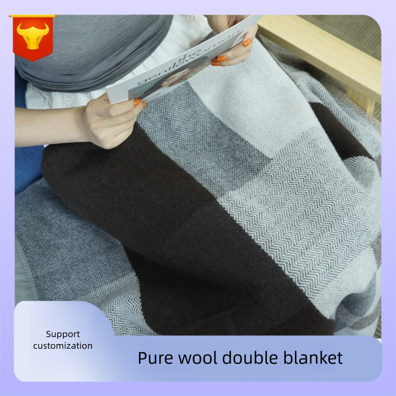 100% Wool Double Blanket Bed Cover Bedroom Moisture-Proof Warm Wool Blanket Wool Fleece Blanket