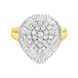 A bold gold and diamond cocktail ring. This pear-shaped ring is made with 31 round and 33 baguette-cut diamonds in a prong and channel setting, respectively. The diamonds, weighing a total of 1 ct., are set in lustrous 10k yellow gold. This ring is the perfect accessory for any night out.