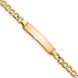 Material: Primary - Purity:14K Finish:Polished Stone Quantity_1:1 Length of Item:6 in Stone Setting_1: Chain Length:6 in Chain Type:Cuban Chain Width:3.5 mm Charm/Element Length:23.5 mm Charm/Element Width:4.5 mm Clasp /Connector:Lobster Feature:Childrens Material: Primary:Gold Stone Shape_1:TBD Stone Size_1:5 x 3.35 mm Width of Item:4.5 mm Engravable:Yes Product Type:Jewelry Jewelry Type:Bracelets Sold By Unit:Each Bracelet Type:ID Bracelets Gender:Unisex Material: Primary - Color:Yellow Feature 2:Semi-Solid Stone Type (Other)_1:Side Stone Mounting(s)