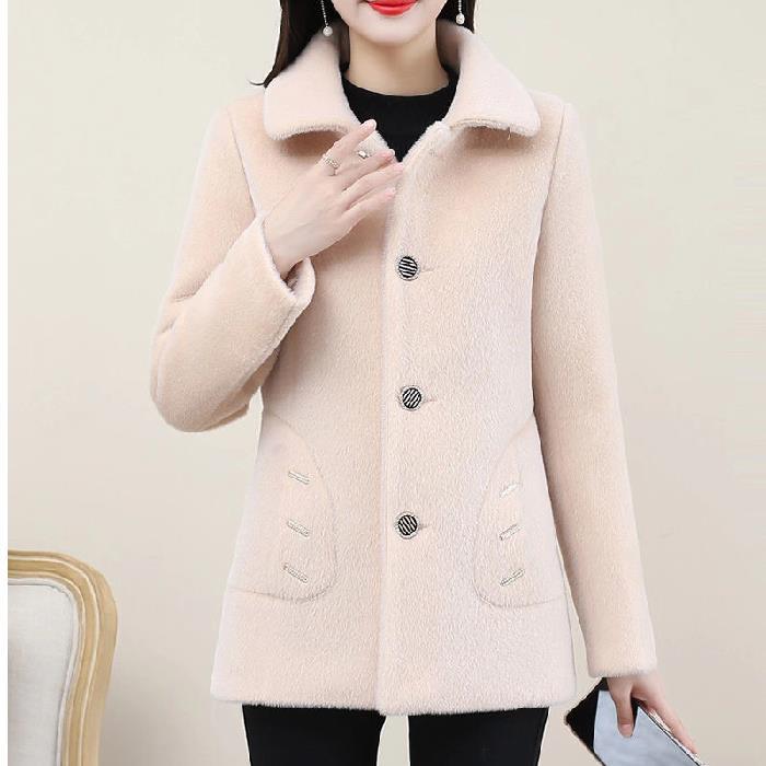 High-Quality Material:Crafted from premium imitation sheepskin, this coat offers a luxurious feel and superior warmth, perfect for the winter season. Stylish Design:Featuring a trendy Korean-style design, this coat exudes a chic and casual vibe, making it a fashionable addition to any wardrobe. Plus Size Availability:Available in larger sizes, this coat caters to a wide range of body types, ensuring everyone can enjoy its stylish and comfortable fit. Slimming Effect:The coat's slimming design enhances your figure, offering a flattering look while keeping you warm. Versatile Fabric:Made from a blend of polyester and spandex, this coat is not only cozy but also durable and easy to care for. Comfortable Wear:With its soft texture and breathable material, this coat provides comfort throughout the day, making it ideal for everyday wear.