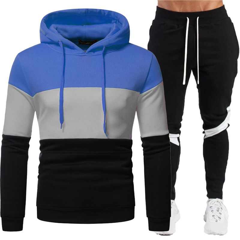 2024 Autumn/Winter Men's 3-Color Splicing Hooded Casual Men's Sweatshirt Set