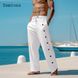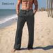 2024 Men Elegant Triple Buttons Cotton Linen Pants Solid White Full-Length Trouser Plus Size Mens Casual Drawstring