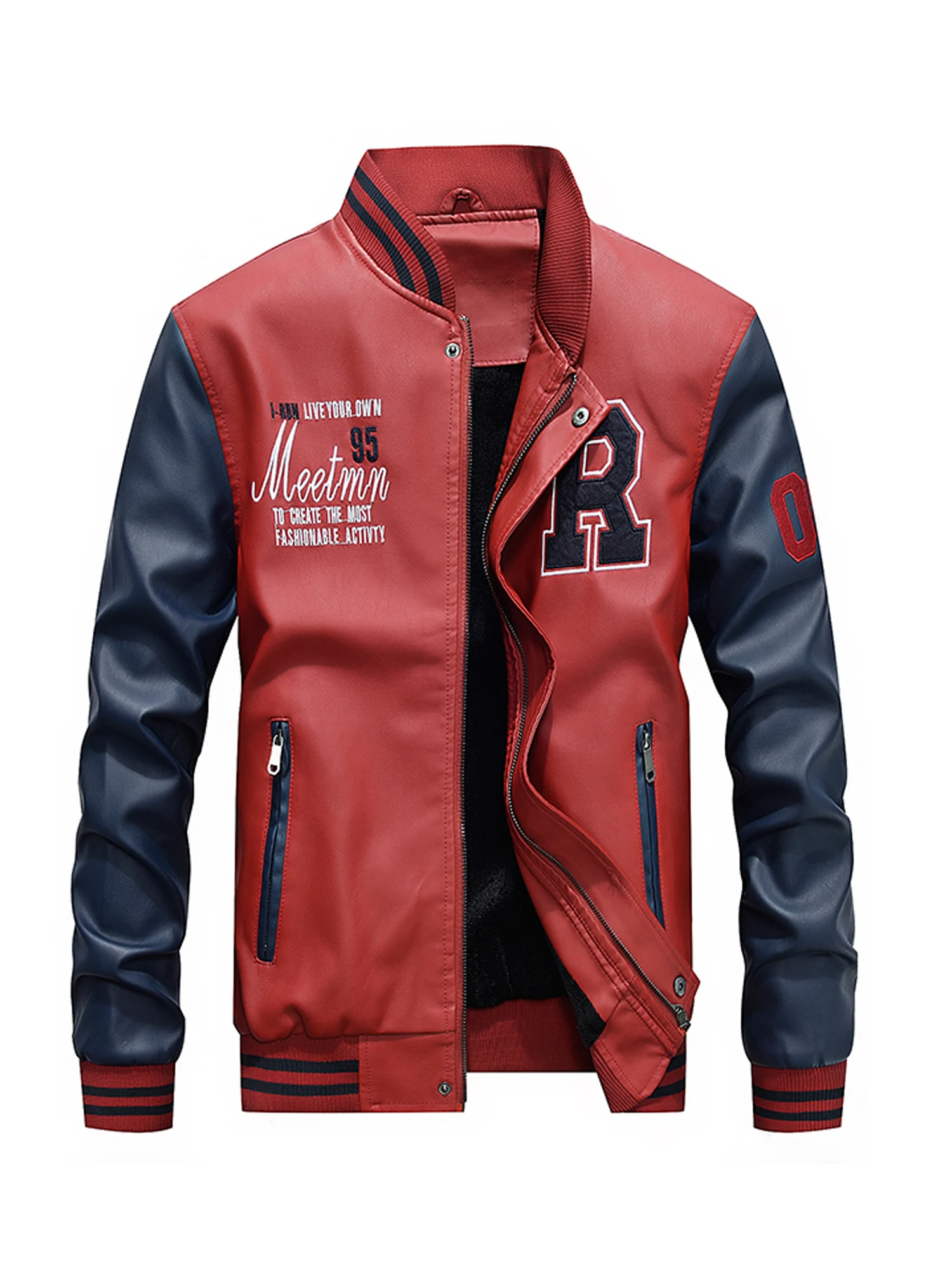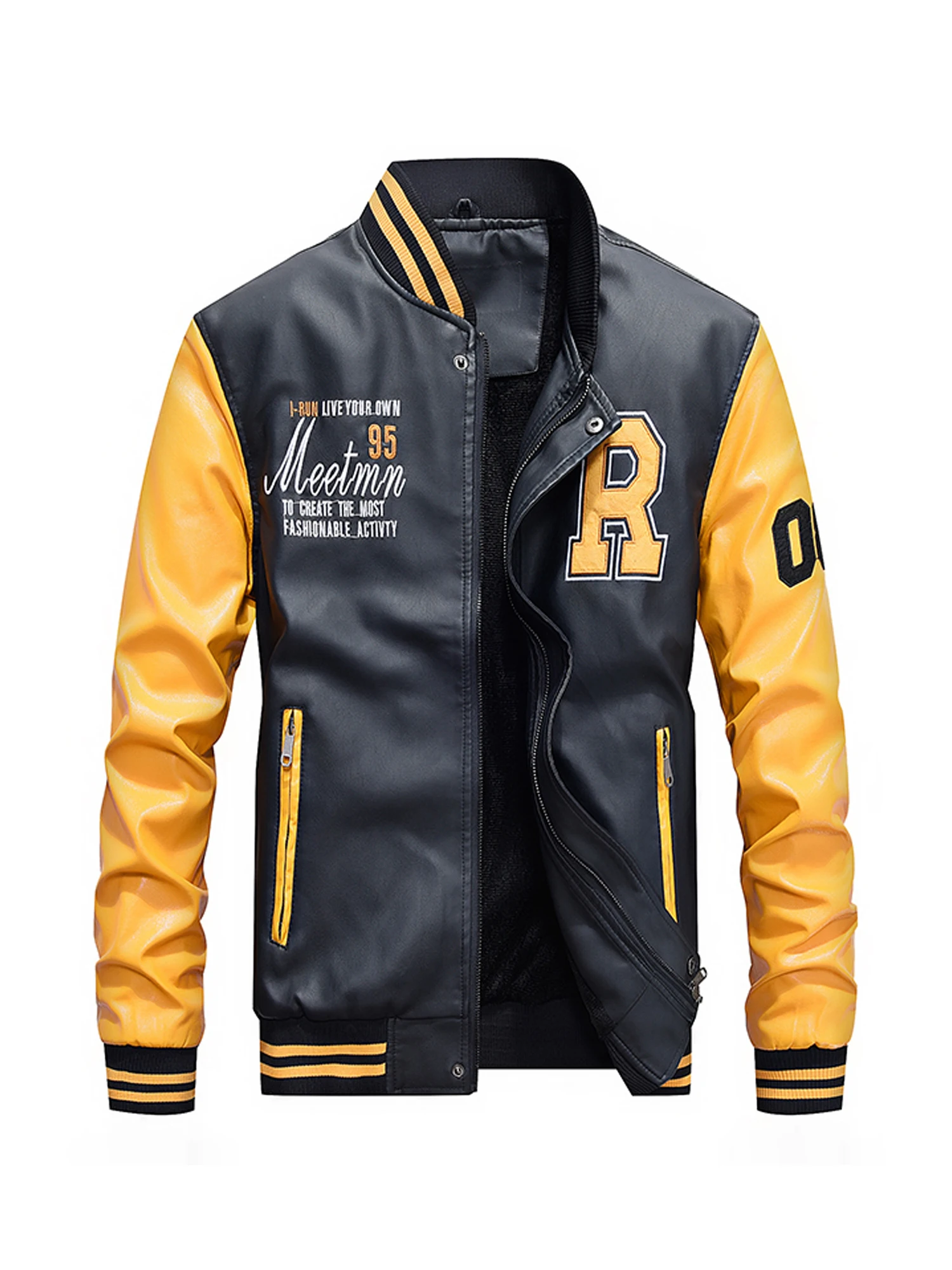 7701 New Arrive Men Solid PU Leather Jacket High Quality Stand Collar Leather Jacket For Men
