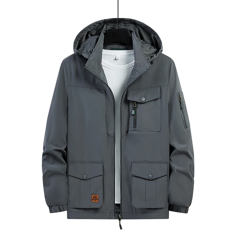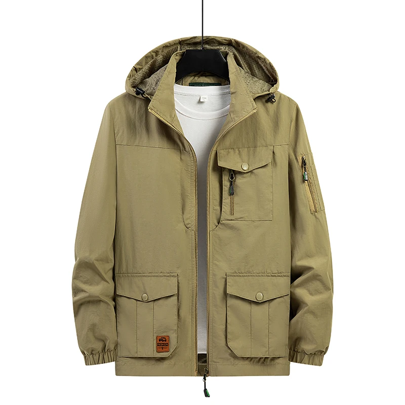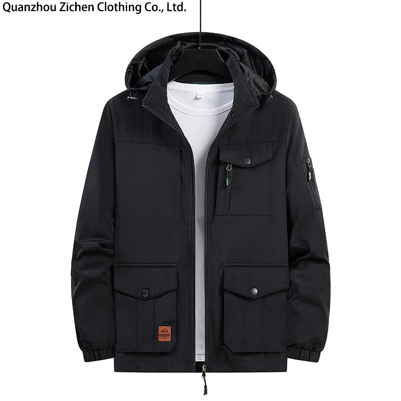 2024 Spring Autumn Outdoor Casual Windproof Baggy Jacket Men Waterproof Detachable Hat Multiple Pocke Pizex Trench