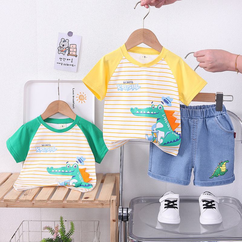 2024 Summer New Crocodile Stripe Short sleeved for Boys Leisure Sports Trendy Cool Set