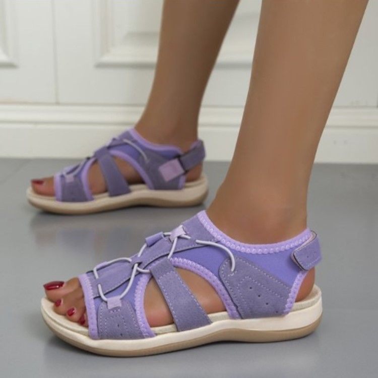 2025 New Roman Slope Heel Round Toe Velcro Fashion Large Beach Solid Color Sandals For Women