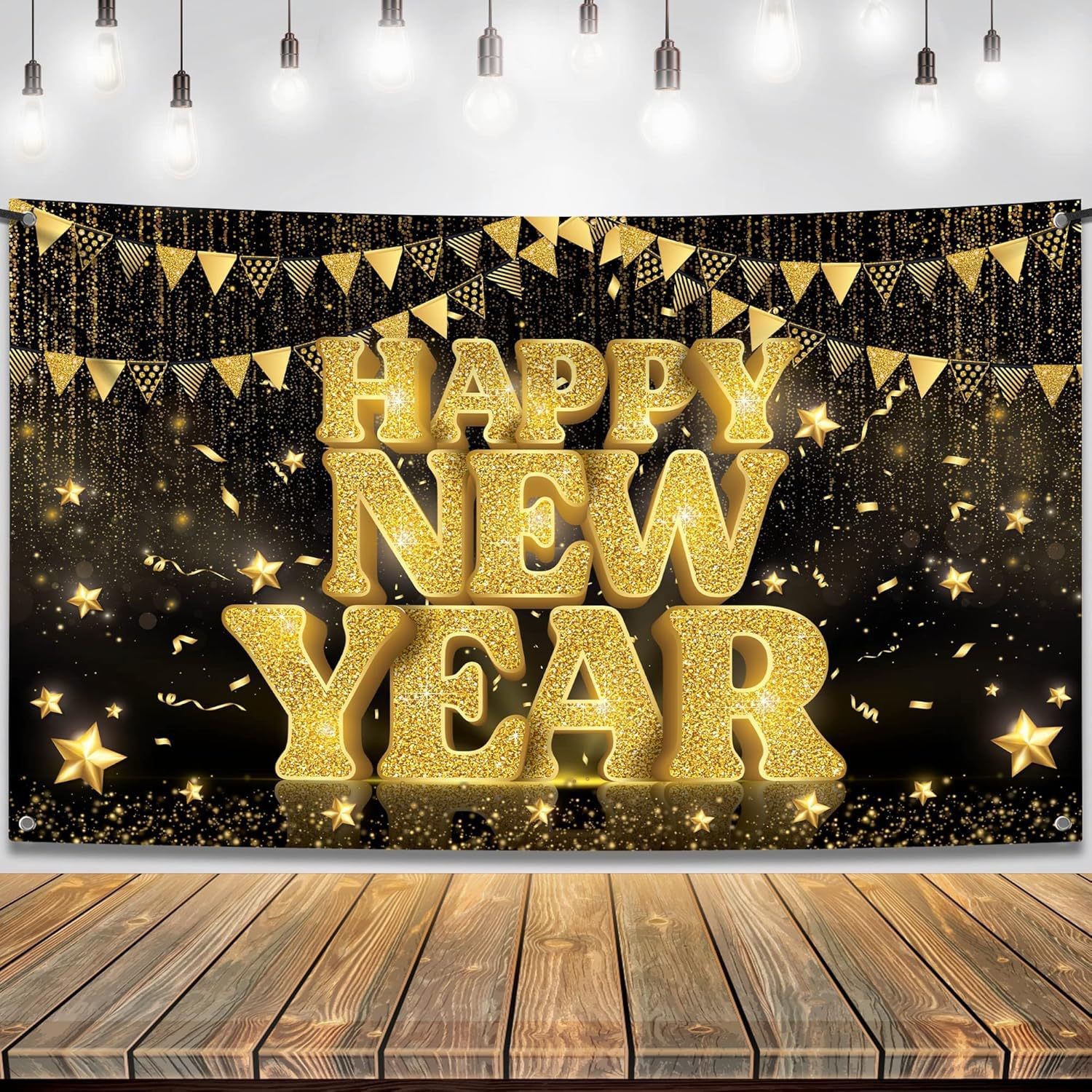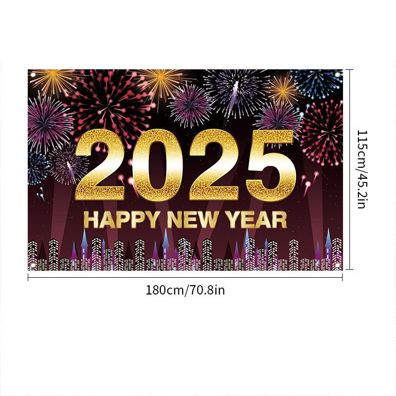 2025 New Year background banner New Year countdown shining fireworks city festival party decorations hanging flag
