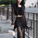2025 Summer Women's Suit With Hollow Waist Tie Short Jacket And Simple Mesh Patchwork Long Pants Two-Piece Set
