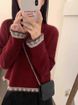 2025 Winter Red Lace 100% Merino Wool Sweater for Women High-End Short New Year Red Zodiac Year Base Sweater