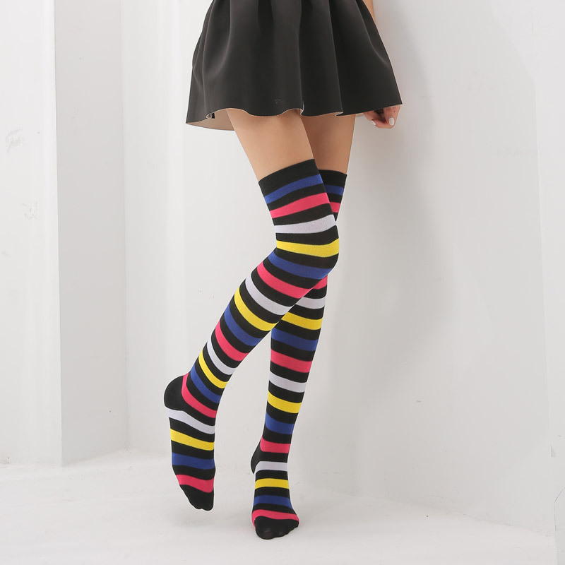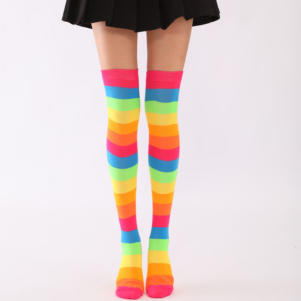 Red Colorful Socks Rainbow Striped Over-the-Knee Long Socks Extra Long Style