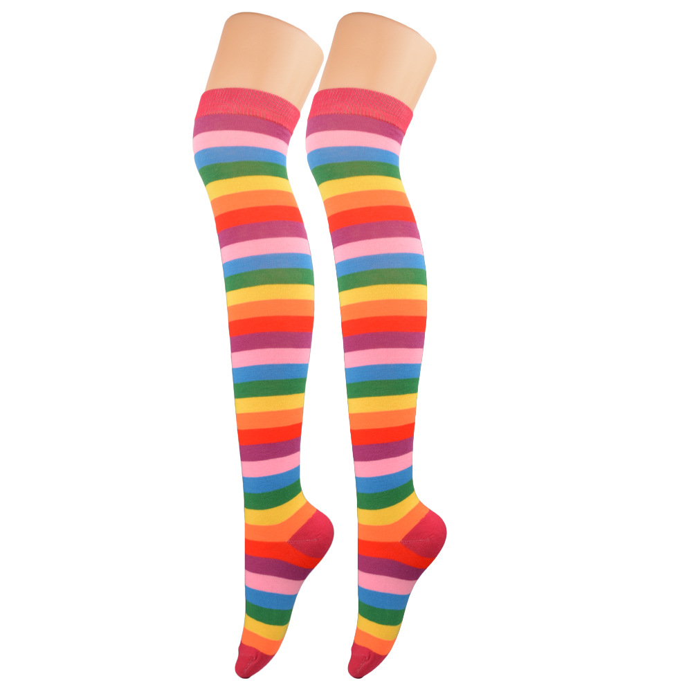 2025d Red Colorful Rainbow Striped Over-the-Knee Socks Extra Long Style