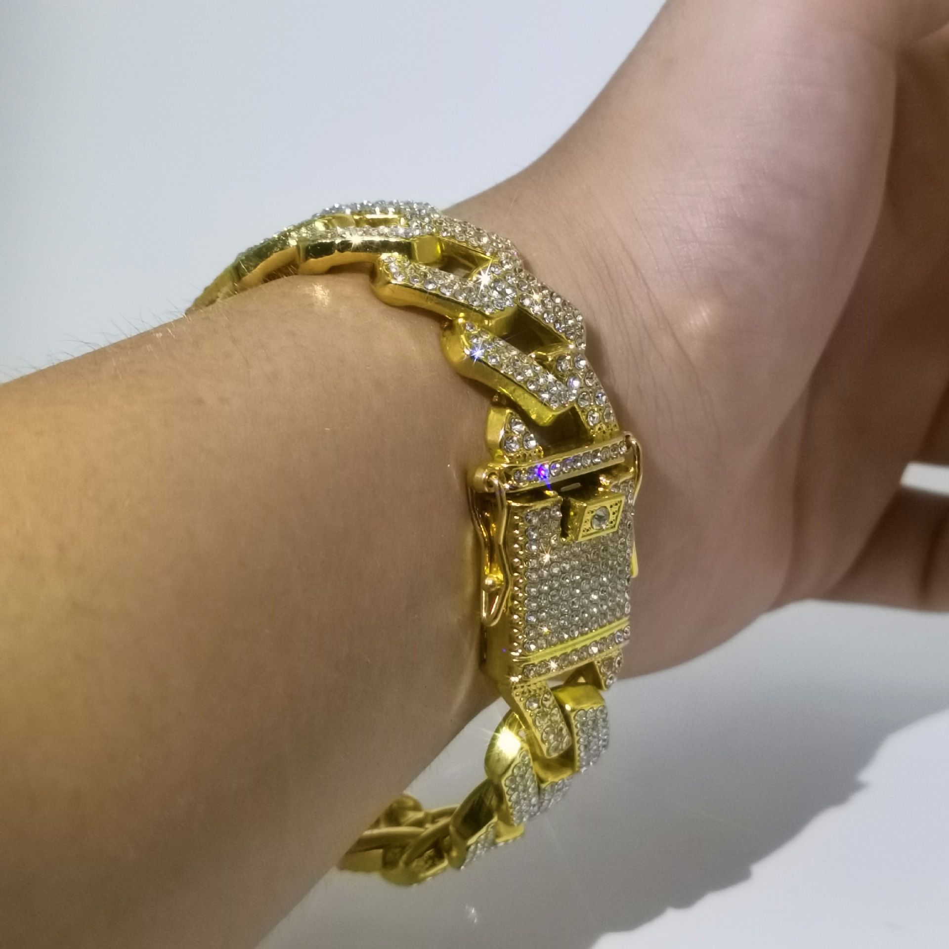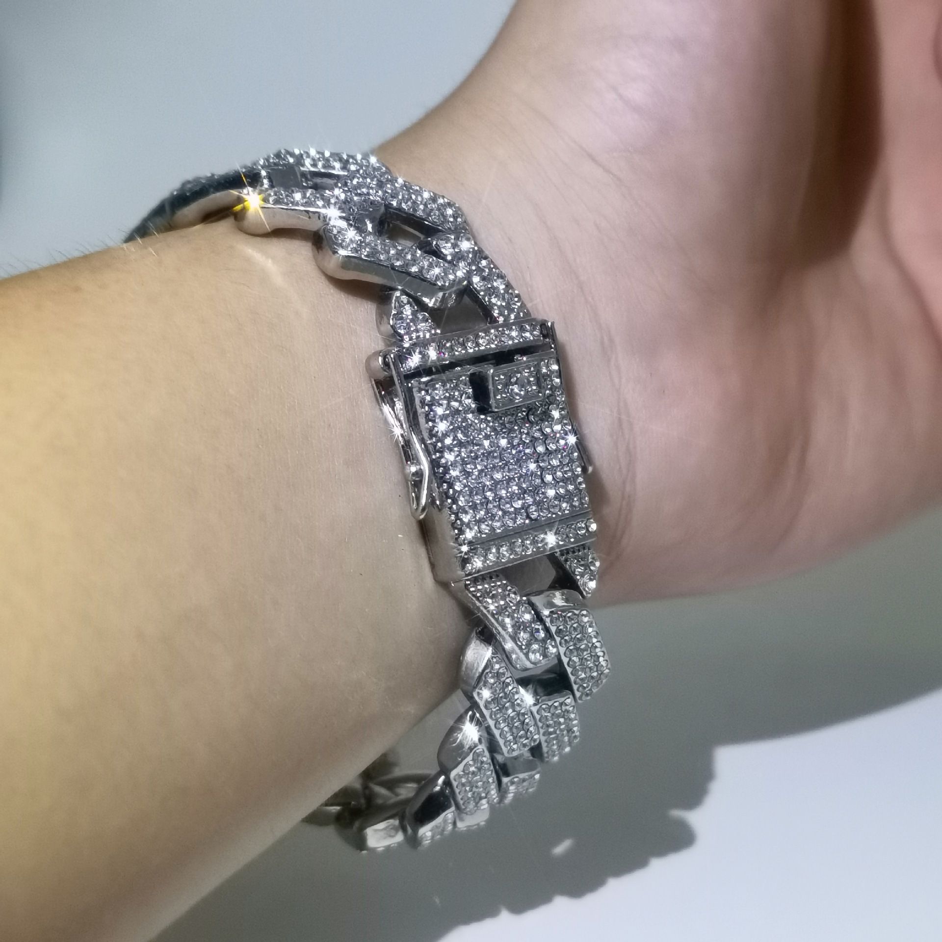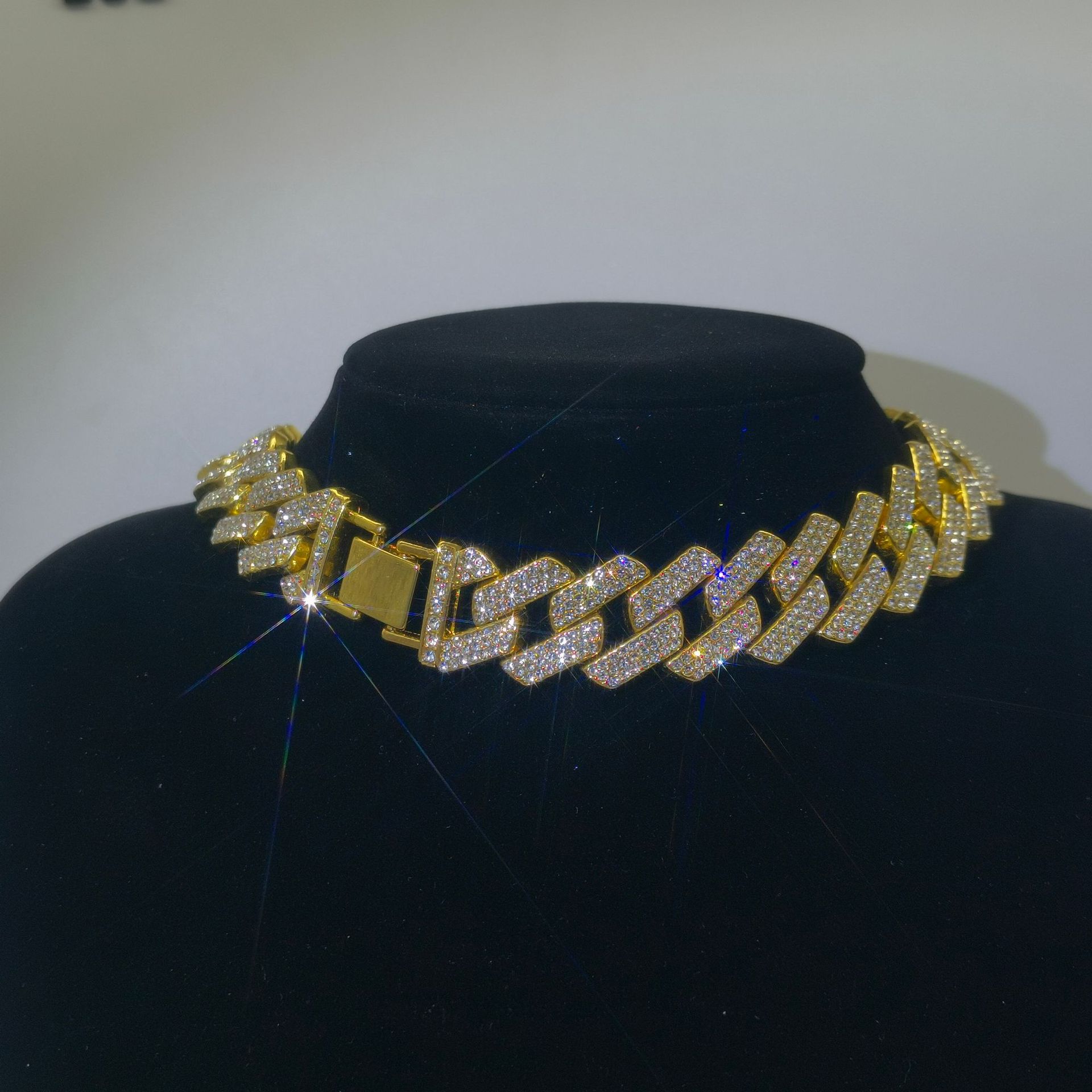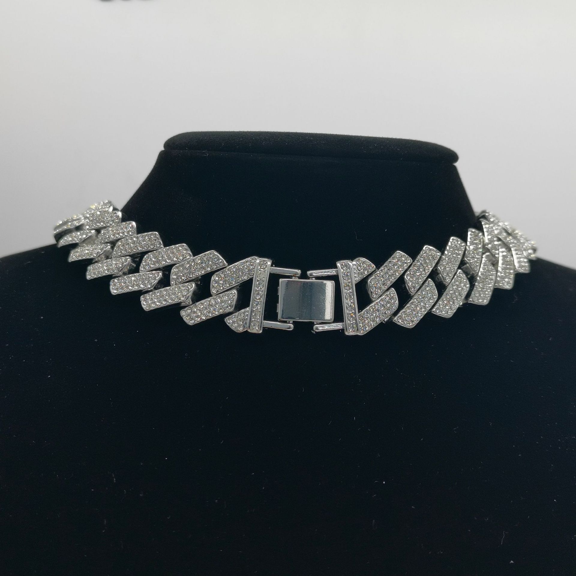 20mm diamond three row diamond Cuban chain men's and women's coarse alloy Cuban bracelet INS hip-hop diamond inlaid Cuban necklace
