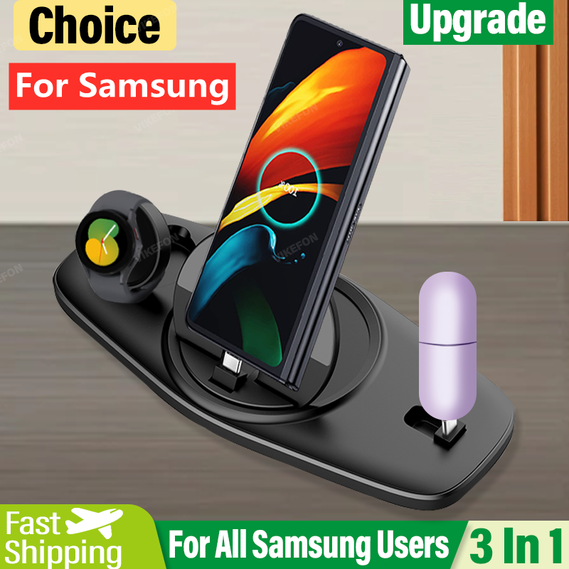3 In 1 Fast Wireless Charger Stand Pad For Samsung Galaxy S24 S23 Watch 5 4 Active 2/1 Buds Z Fold Phone Charging