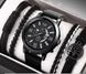 5pcs/set men's new watch set Cool three eye quartz watch + versatile beaded bracelet