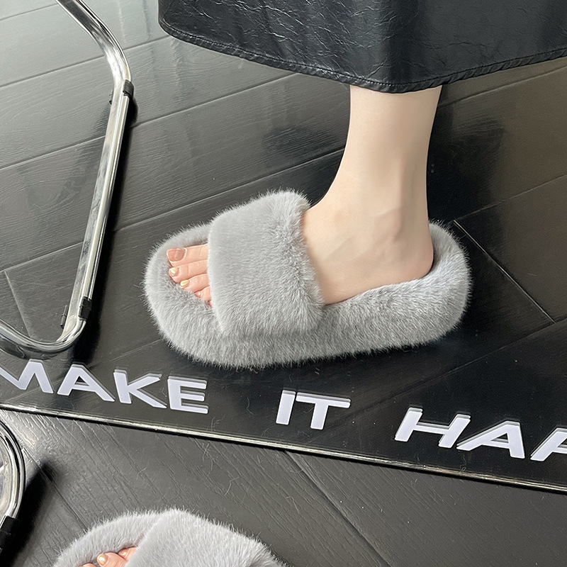 7cm thick bottom height increasing cotton slipper for women 2023 new model, infrared network, wearing fuzzy slippers,