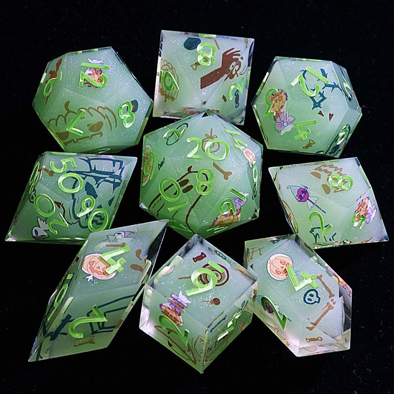9 Polyhedral Resin DD Sets Of Dice Cute Green Halloween Candy For Dungeons Dragons RPG