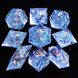 This DND dice set is named "Celestial Cross Dice", where every roll shatters reality into starlight. When your celestial warlock channels divine radiance or your astral monk walks the silver paths between worlds, these dice don't settle—they supernova, their sapphire cores blazing with prismatic fractals while argent constellations burn through the surface. That heartbeat of silence before the numbers resolve? The archangels placing bets.