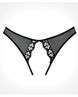 Seduce him with feisty flirtations in this provocative bikini panty featuring an all over sheer mesh with thick sides, an open crotch panel with an ornate crochet lace trim, and an open rear with booty shaping straps. Color Black . One size fits most. Waist 26 inches to 30 inches. Low waist 28.5 inches to 32.5 inches. Hips 36 inches to 40 inches.