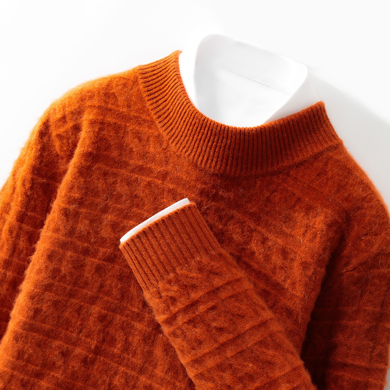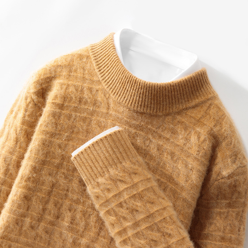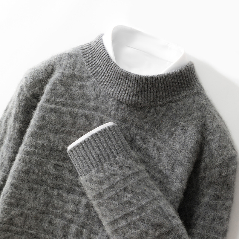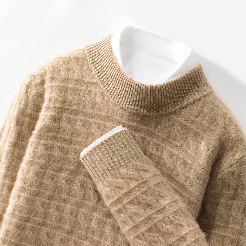 Autumn and winter 2024 new woolen men's round neck solid color jacquard thickened casual Fried Dough Twists cashmere