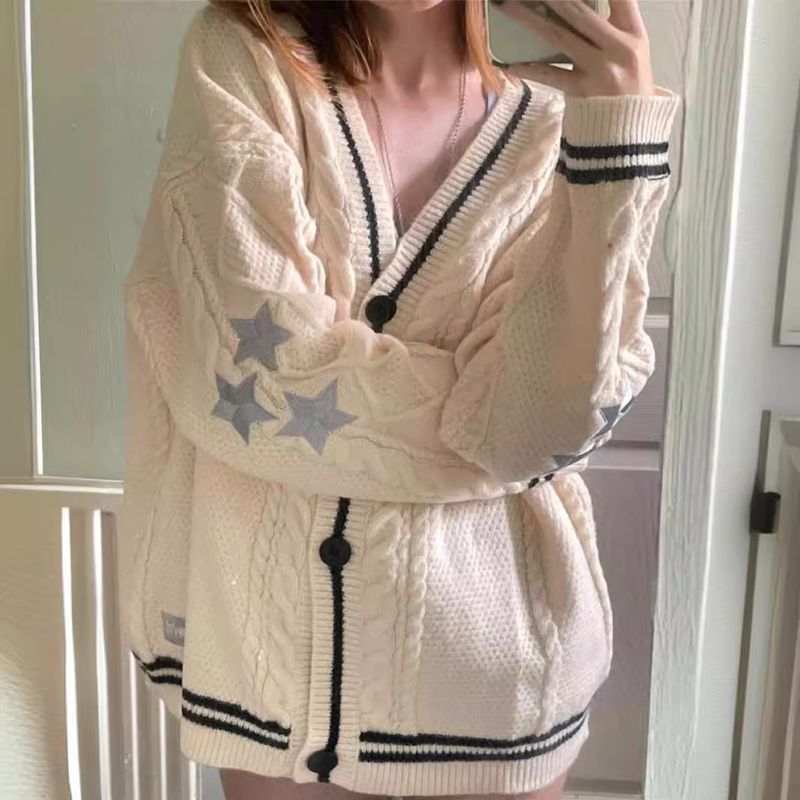 Quality Material: Crafted from high-quality polyester, this sweater offers durability and comfort, perfect for everyday wear. Stylish Design: Featuring a sweet and fresh style, this sweater is a trendy choice for any wardrobe, especially during the autumn and winter seasons. Versatile Use:Ideal for commuting or casual outings, this sweater can be easily paired with different outfits, enhancing your style quotient. European Style:Inspired by European fashion trends, this sweater boasts a chic and sophisticated design that stands out in the crowd. Single Row Button:The single row button closure adds a touch of elegance and simplicity to the sweater, making it easy to wear and remove. Neutral Color:Available in a versatile neutral beige color, this sweater can be easily matched with any outfit, enhancing your fashion statement.