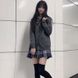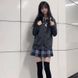 Autumn college style dark gray JK uniform jacket knitted sweater cardigan long sleeved top soft girl set
