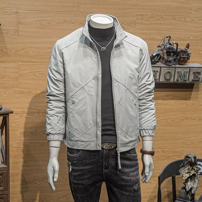 Autumn minimalist casual solid color top trend slim fit autumn style stand up collar workwear jacket