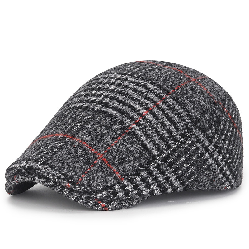 Autumn winter men's women's wool woolen red plaid duckbill fashionable British forward hats, casual and warm berets
