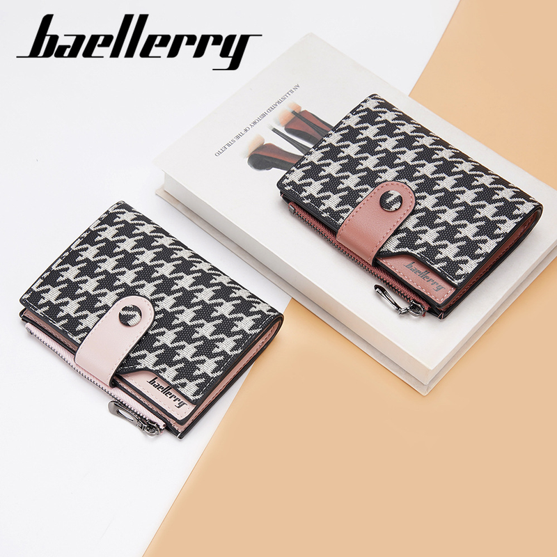 Baellerry New Wallet Women's Short Korean-style Houndstooth Contrast Multi-card Zipper Coin Purse Card Bag
