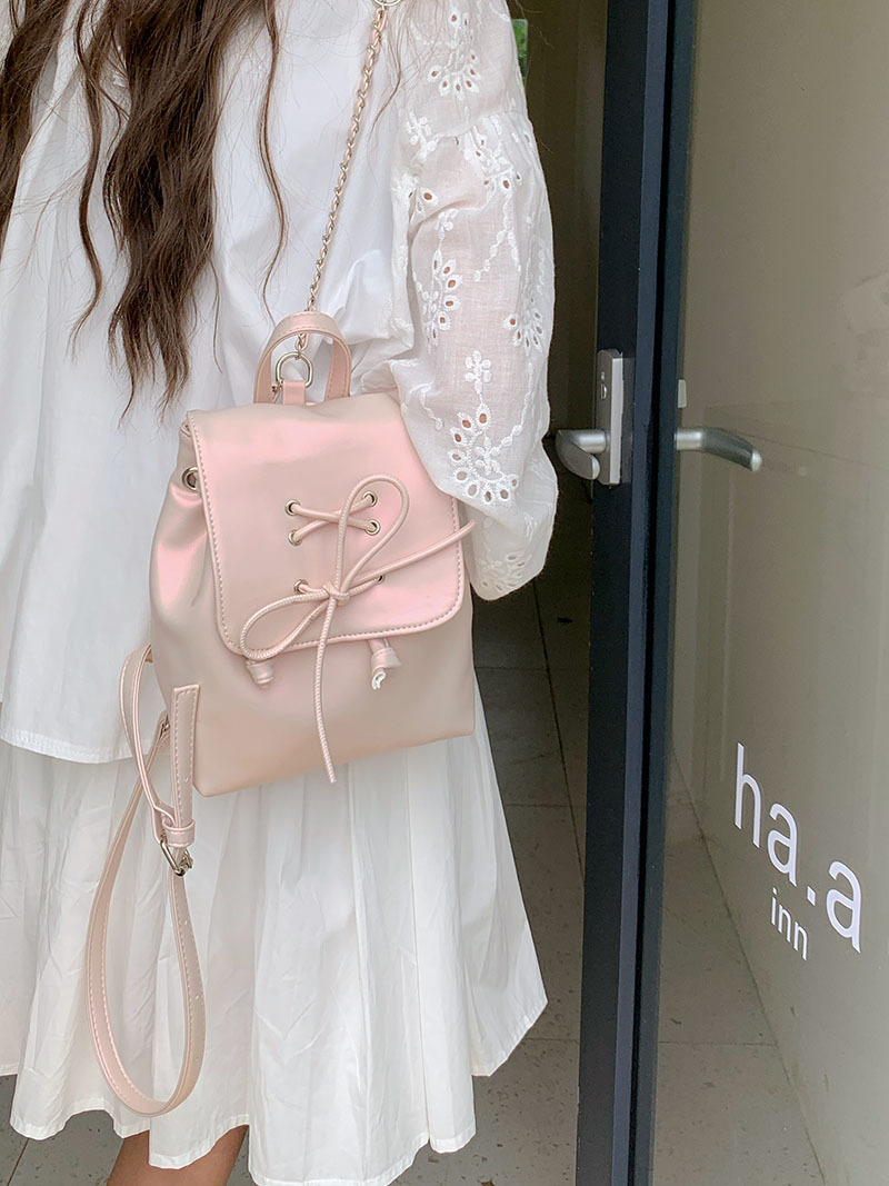 Ballet style bow double shoulder women's bag 2024 new trendy Korean backpack, cute portable shoulder bag schoolbag