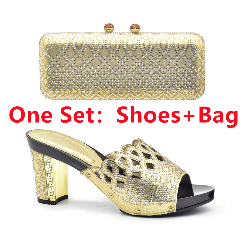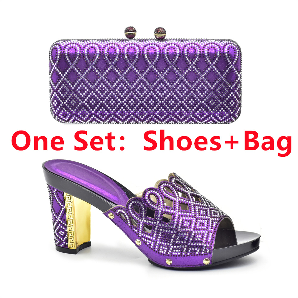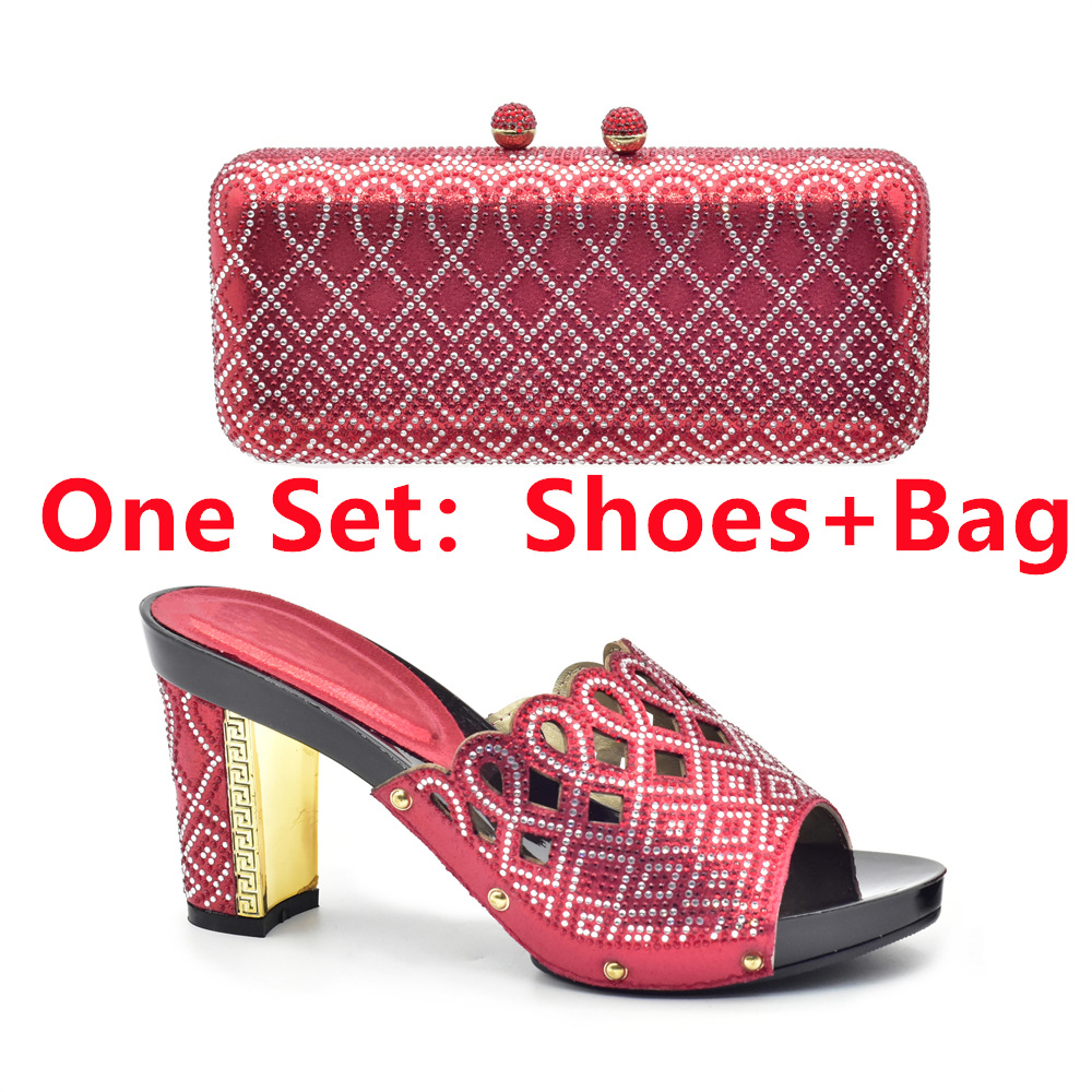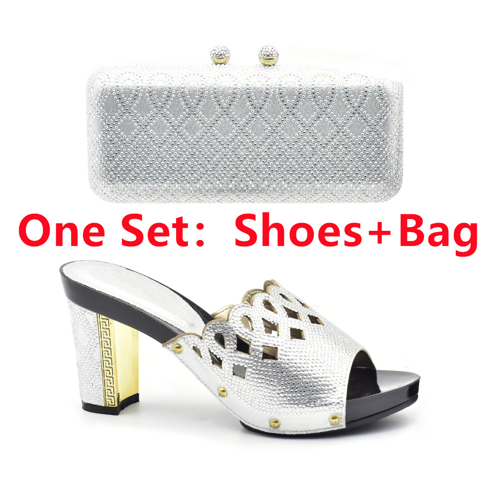 Banquet party round head hot diamond high heel sandals with the same clutch bag party shoe bag set