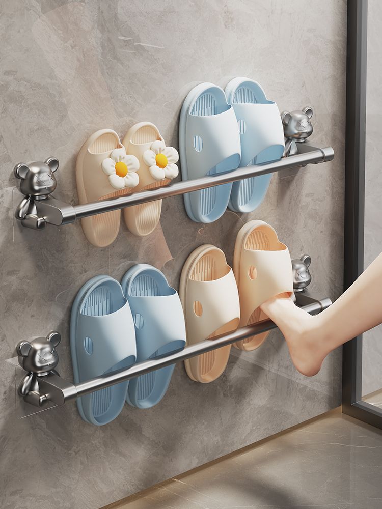 Bathroom No-Drill Slipper Rack Toilet Storage Rack Wall-Mounted Drainage Rack Shoe Organizer Magic Tool