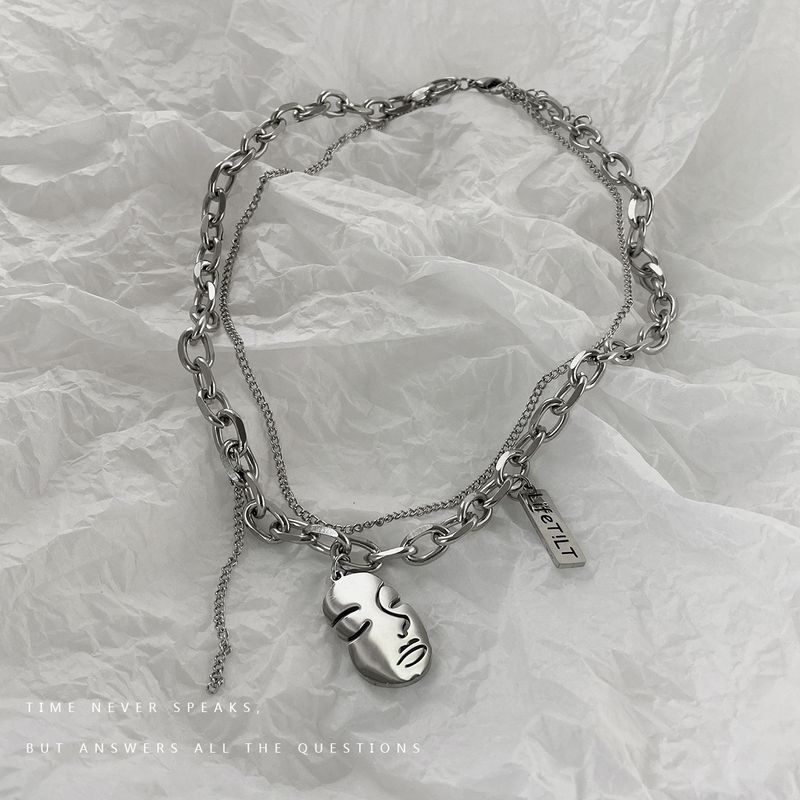 Beauty avatar with double-layer stacked titanium steel women, simple and cool, niche design for couples, trendy hip-hop