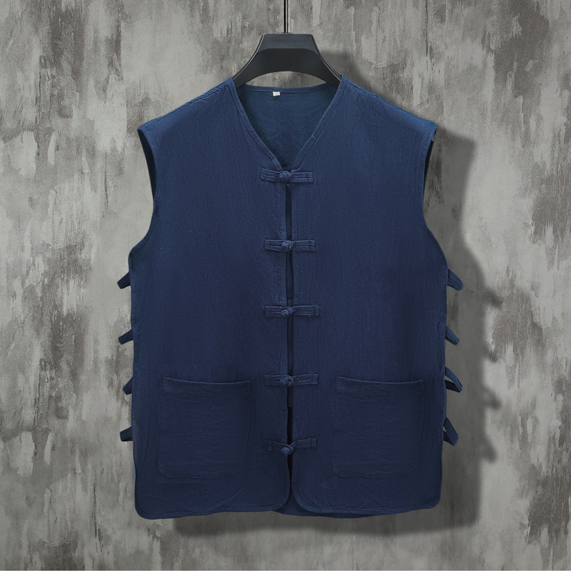 Beijing Kam Shoulder 2024 Thin Cotton and Hemp Tank Top Chinese Style Vest Clip Button Old Man Sweatshirt Men's