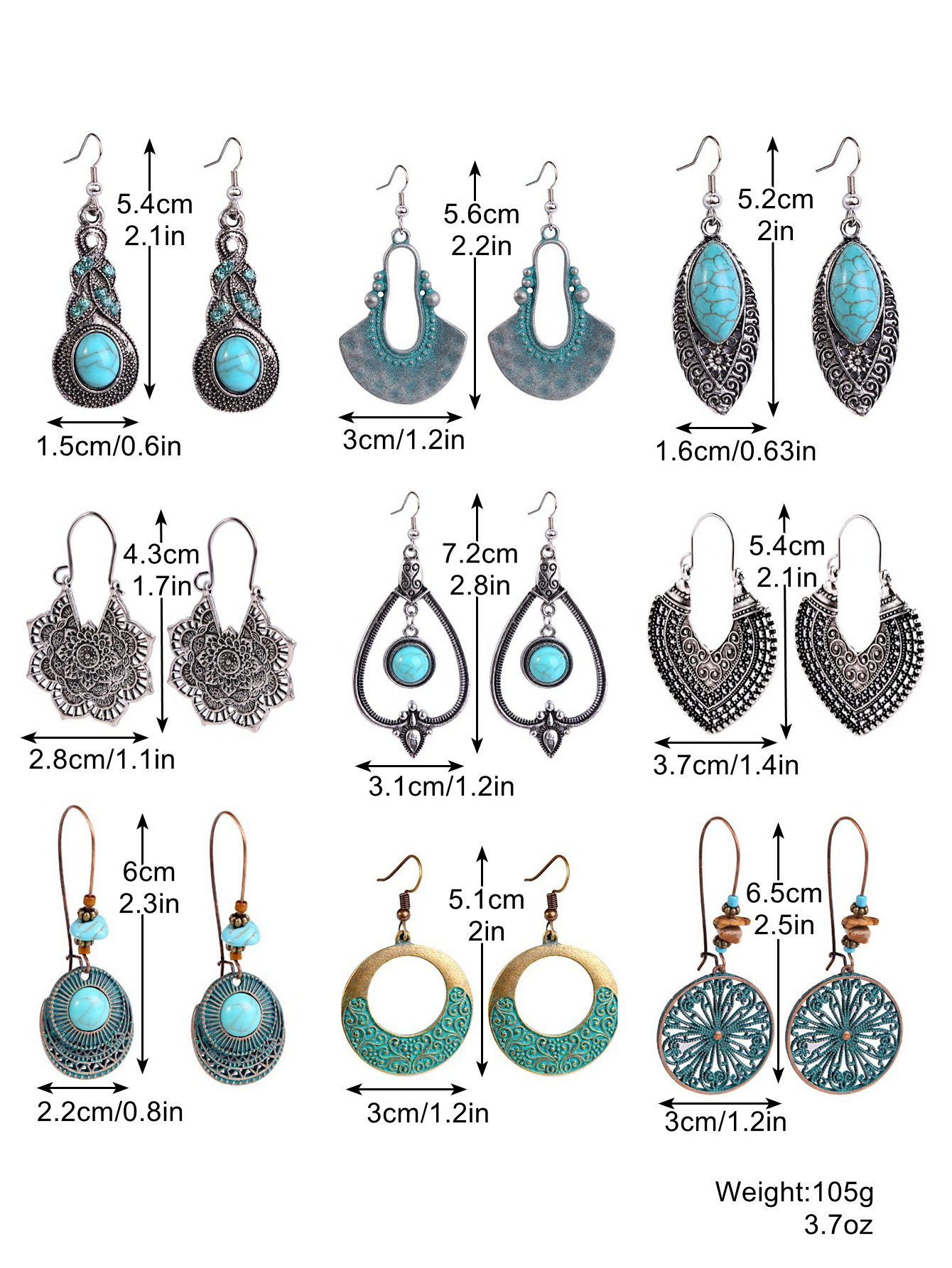 best selling ethnic earrings turquoise earring sets Bohemian retro earrings