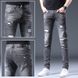 Spring and autumn distressed jeans, men's patches, cotton, casual and trendy men's jeans, youth elastic slim fit jeans, men's small feet