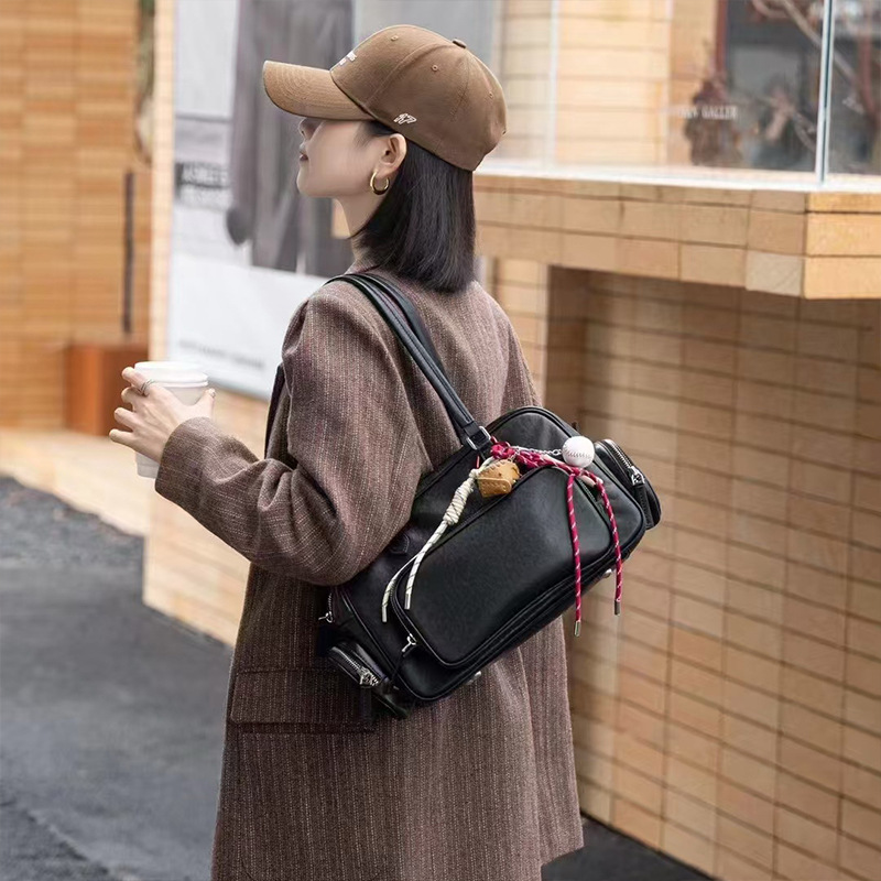 Boston 2024 new multi pocket niche leather motorcycle women's large capacity single shoulder armpit bag