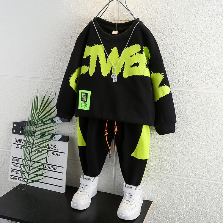 Boys' Lightning 2024 Spring and Autumn New Style Handsome Casual Hoodie Sports Set Children's Clothing