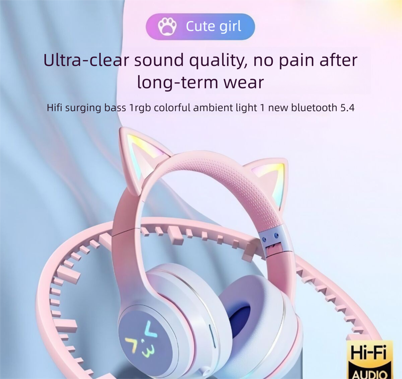 BT618 Over-Ear Bluetooth Gaming Mobile Phone Wireless Deep Bass Headset Full Coverage Cat Ear