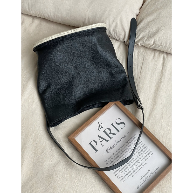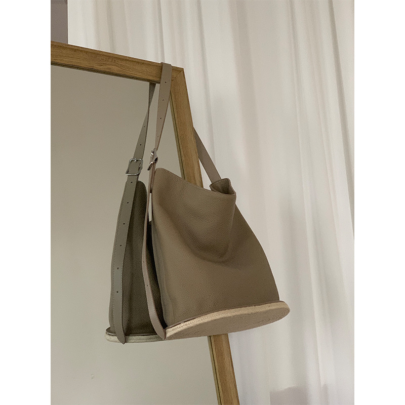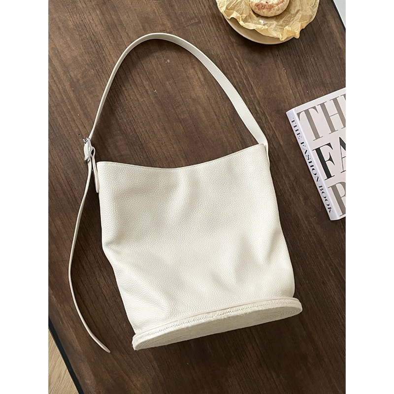 Bucket leisure large capacity commuting women's 2024 new single shoulder tote bag, leather soft cowhide crossbody bag