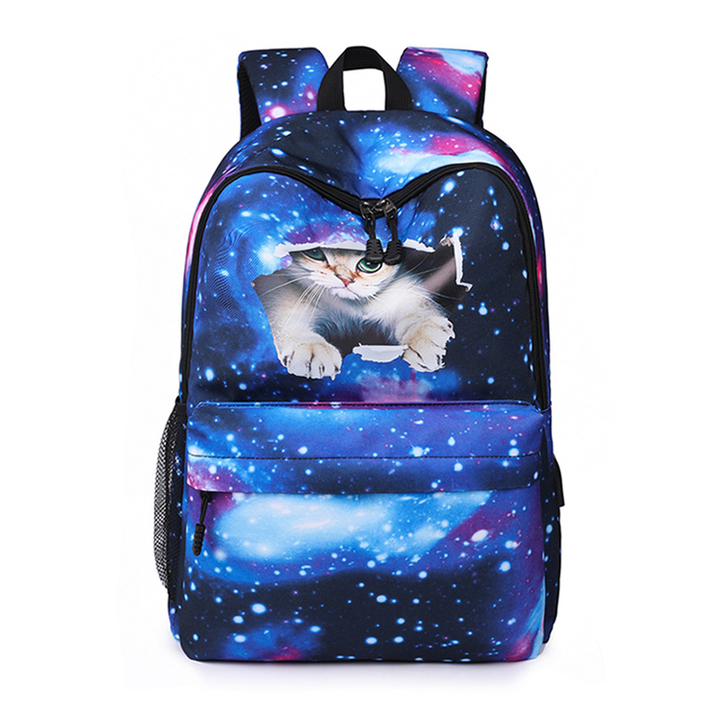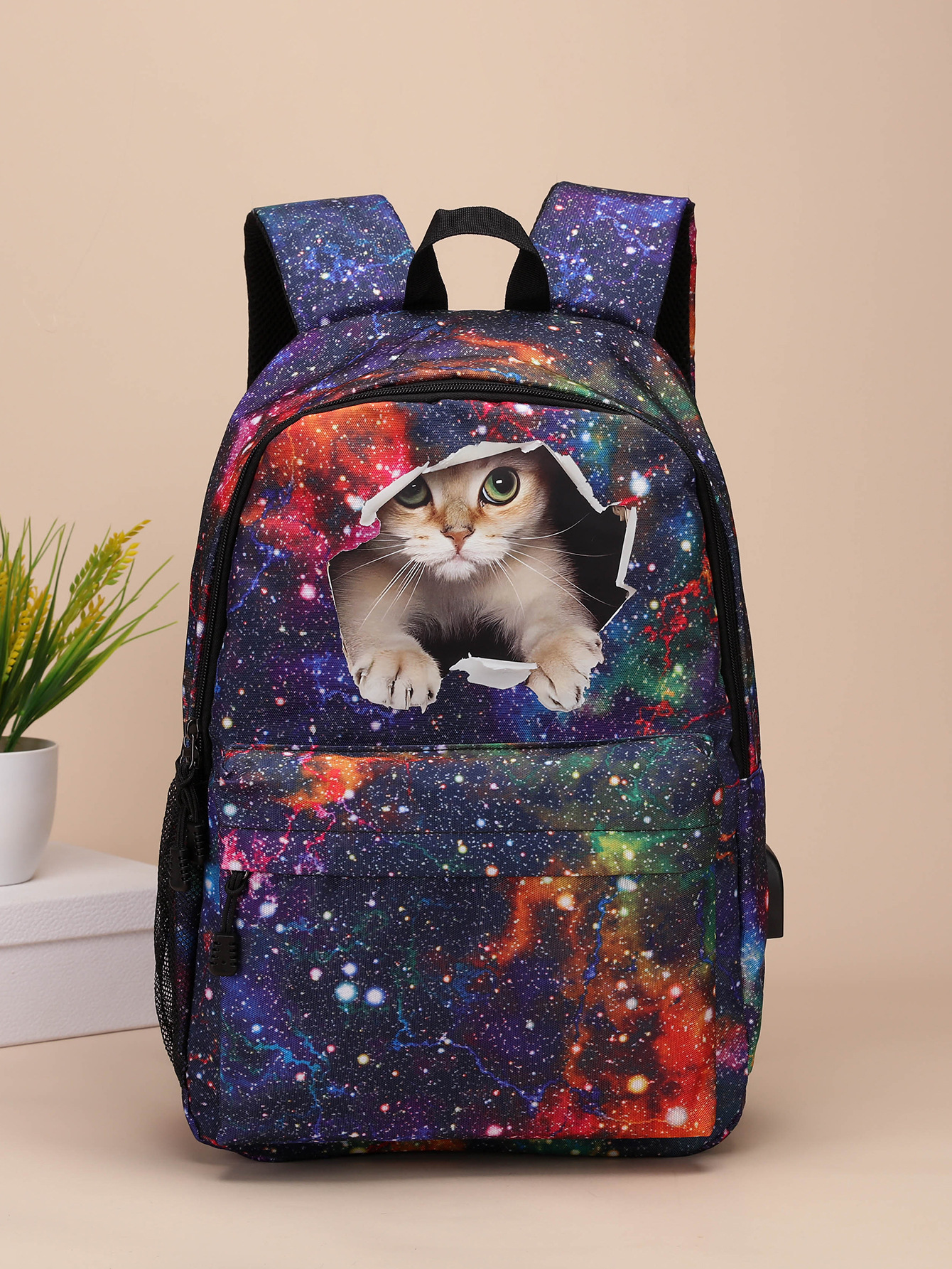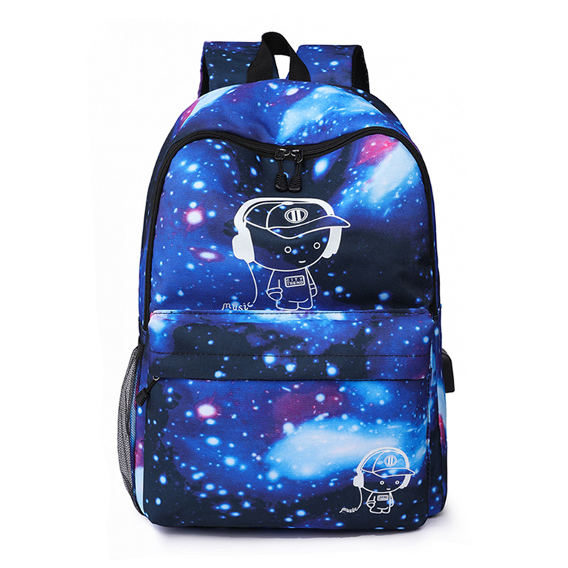 Can make patterned starry night light backpack with multifunctional USB charging, student backpack, sports and leisure
