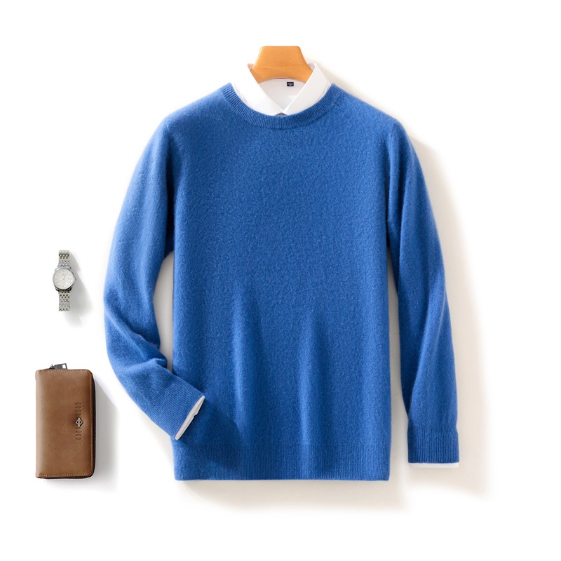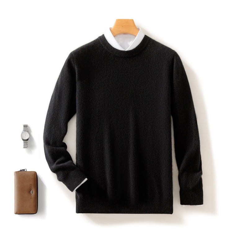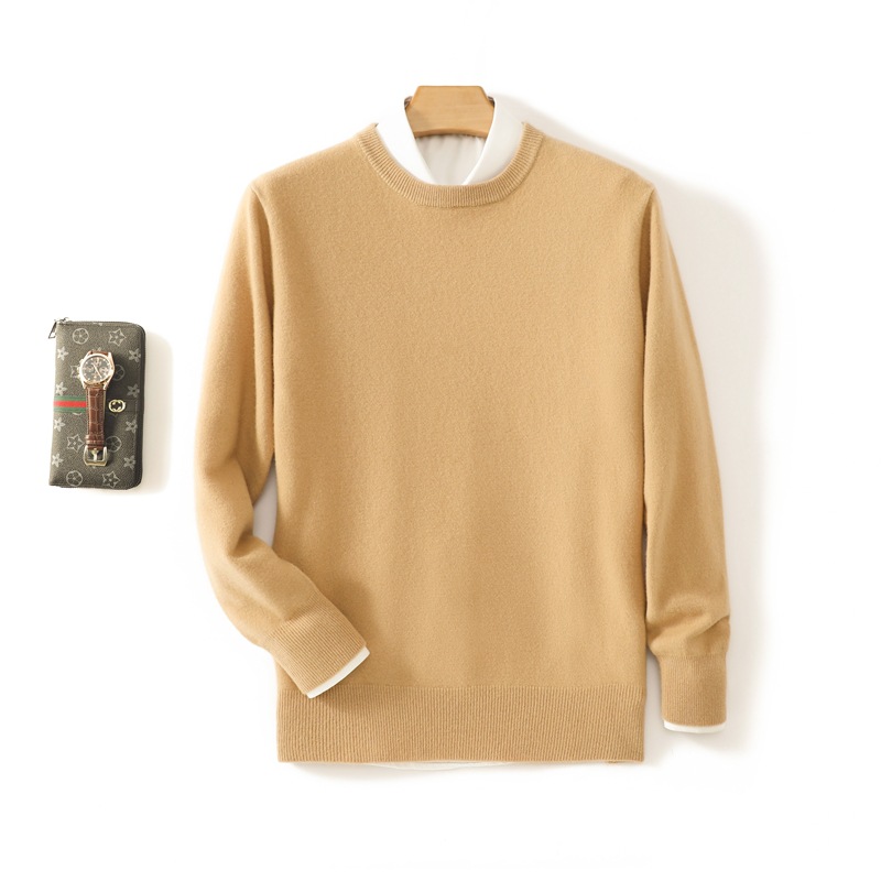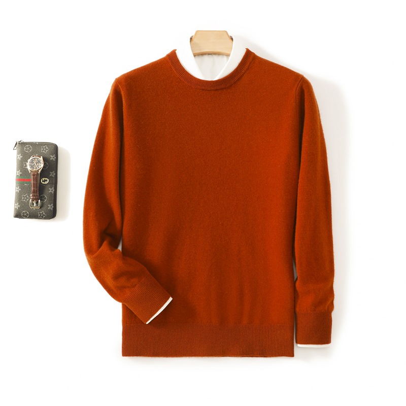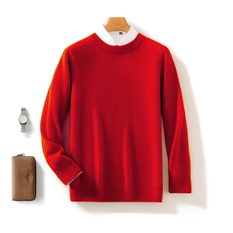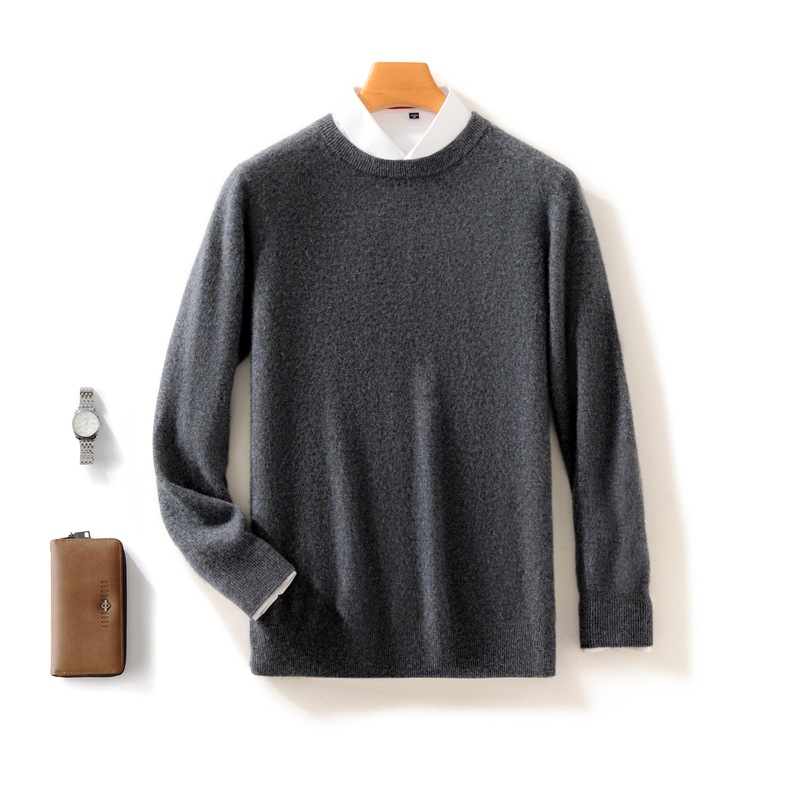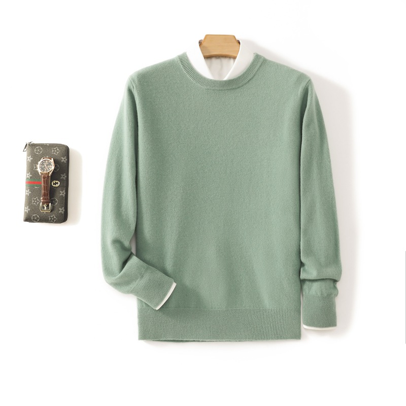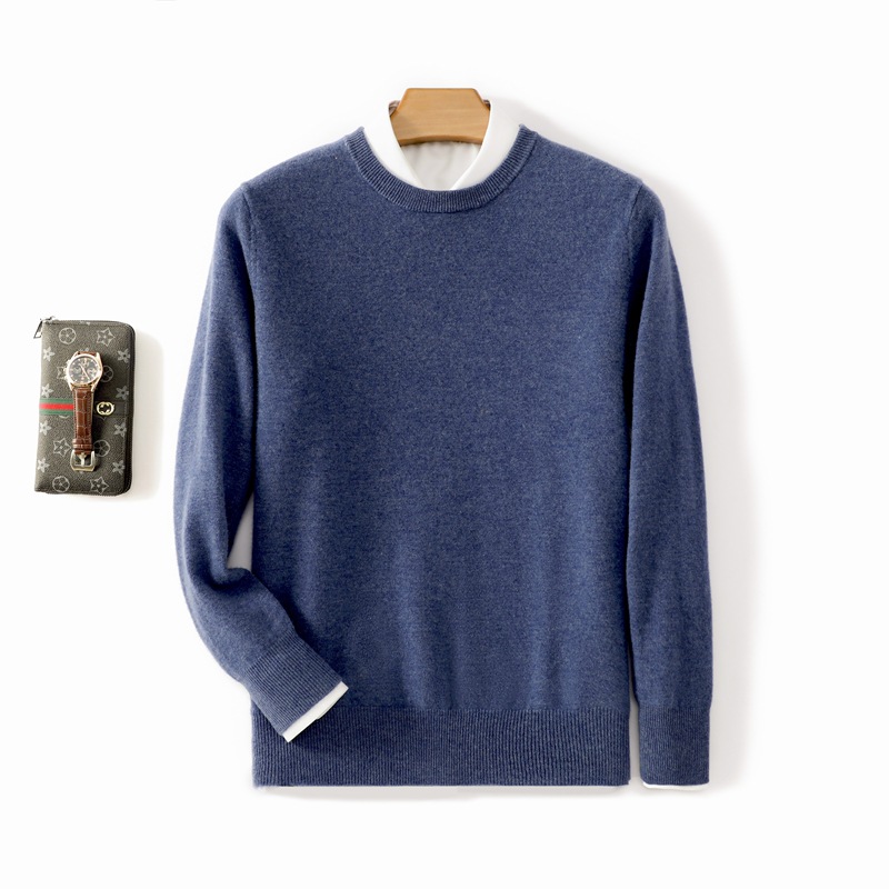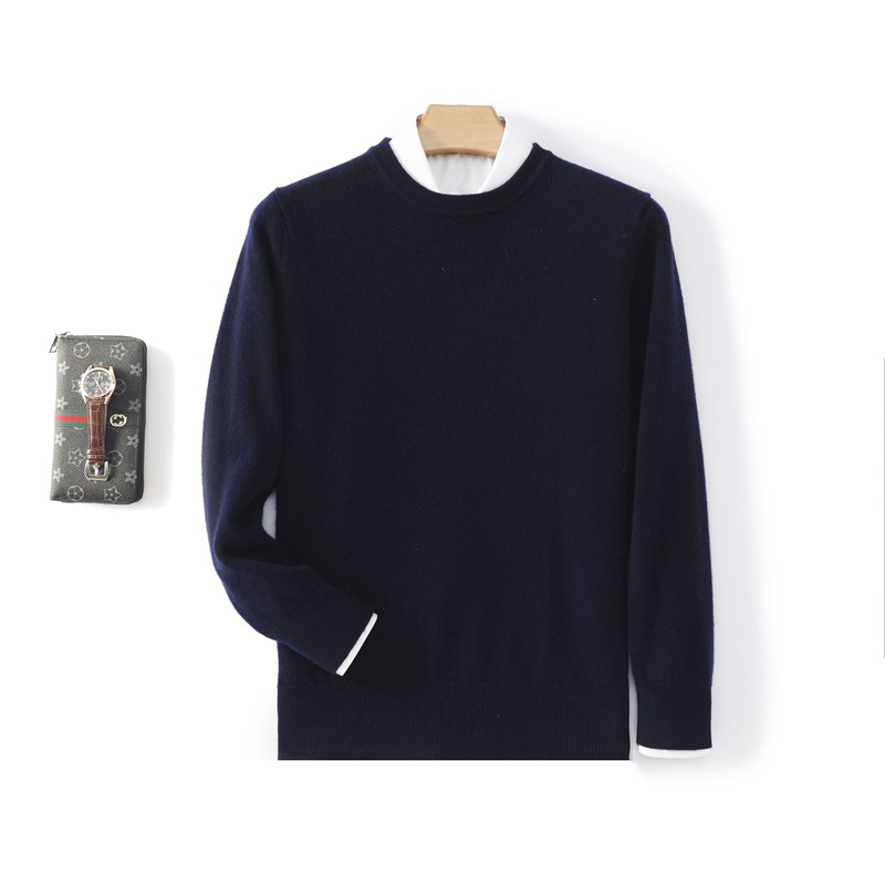 Casual round neck pure wool men's autumn and winter solid color pullover basic versatile knitted top base sweater
