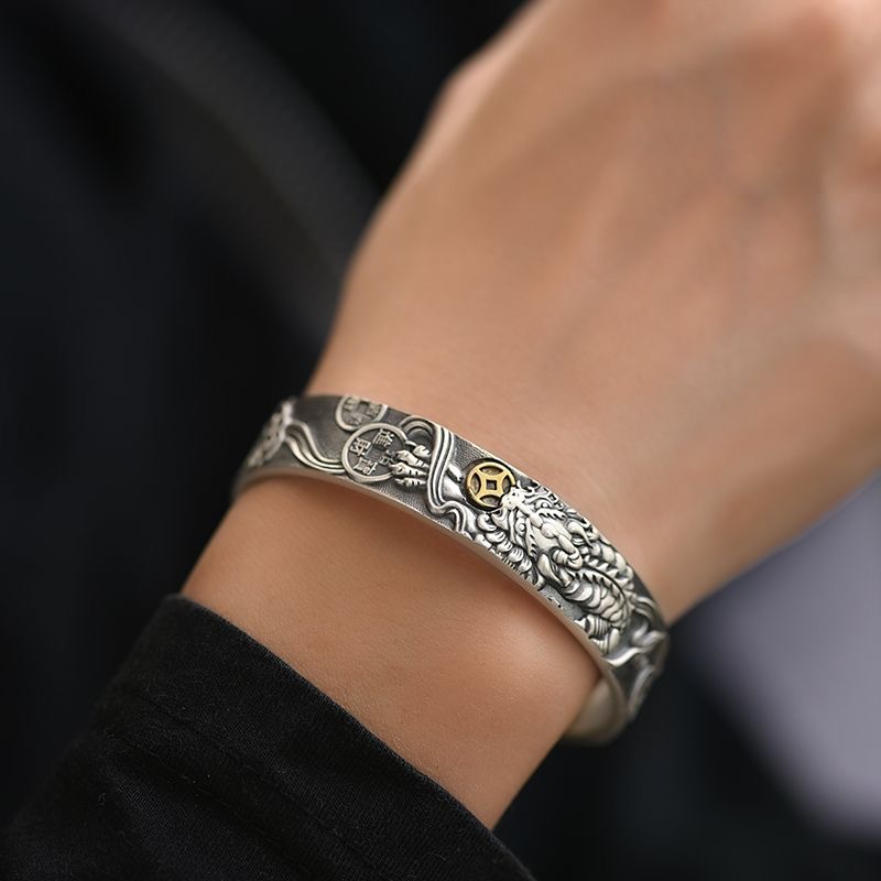 Chncui Nw Attracting Walth Pixiu Mal Prsonality Dominant Dragon and Phonix Auspicious Elphant Opn Braclt