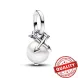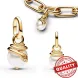 Classic Gold Wire Heart Sparking 925 Sterling Silver Pearl Angel Dangle Charm For DIY Women Bracelet Pendant Accessories