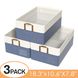 Included in the package are three foldable storage cubes featuring a two-tone design, ideal for organization and clutter reduction; they optimize closet space effectively. Each cube is equipped with two sewn fabric handles, facilitating easy transport between rooms or removal from shelves and corners. Constructed from lightweight yet durable fabrics, these cubes offer both strength and breathability. When paired with a storage cube organizer (not included), they can function as either open bins or drawers. The product dimensions are 18.3 x 10.6 x 7.8 inches (L × W × H). Additional features include a side transparent label card slot for improved sorting capabilities. These storage solutions are perfect for organizing scarves, towels, shirts, skirts, and toys.