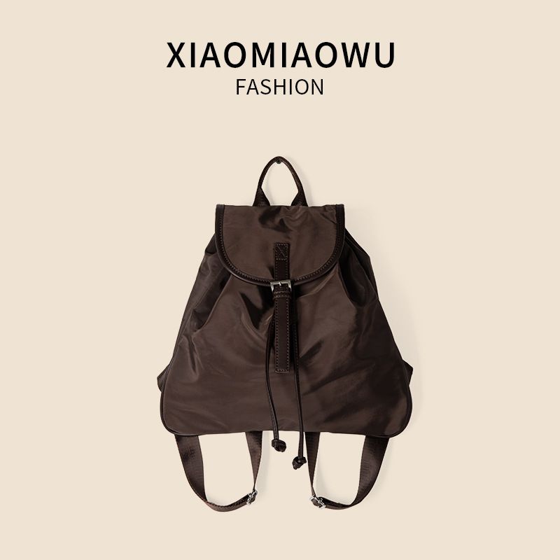 College style black drawstring college student casual nylon large capacity new backpack simple women's high-end
