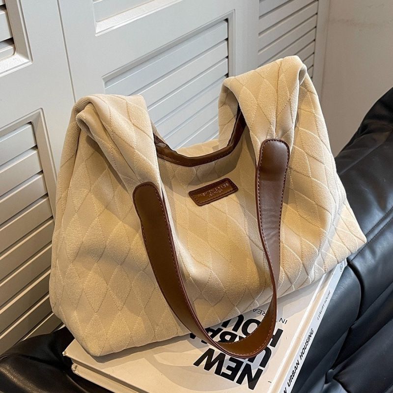 Commuter Big Women's 2023 New Fashion Lingge Canvas Shoulder Large Capacity Class Underarm Tote Bag
