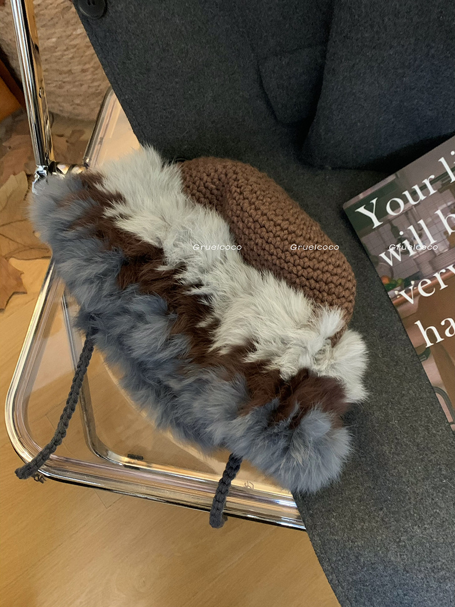 Congee Cocoa Rabbit Hair Knitted Women's Autumn and Winter Splice Warm Wool Cold proof Pullover Plush Ear Protection