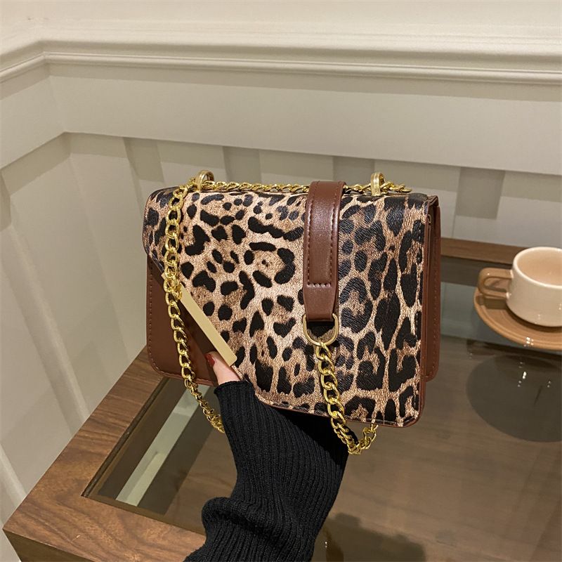 Contrasting Color Splicing Small Square Bag Women's Leopard Print Pattern Messenger Bag Shoulder Bag