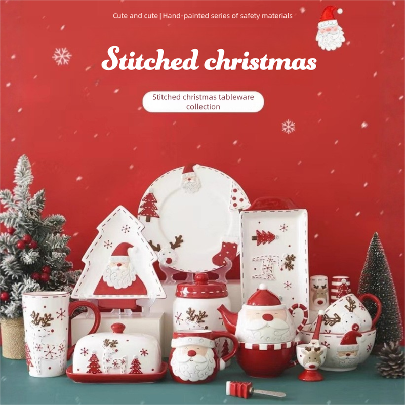 Cross-Border Hot Sale In Stock Factory Direct Wholesale Nordic Christmas Limited Edition Tableware Bowls Plates Cups